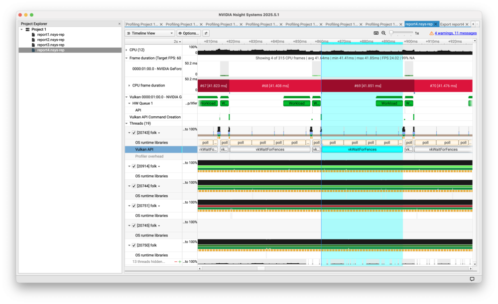 You can see that we're spending 40ms on inFlightFence every frame in Tracy here: