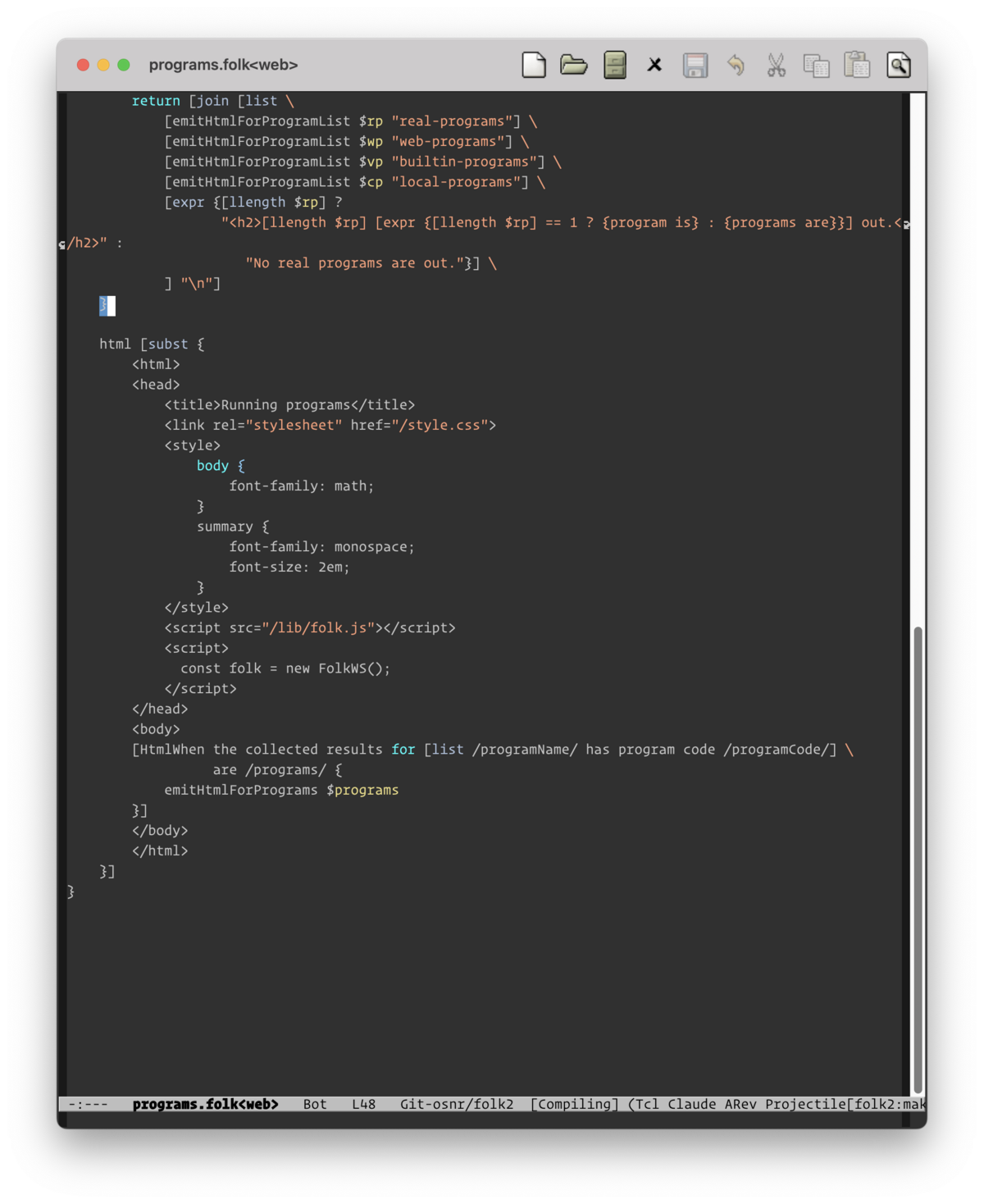 Mason Jones has been developing a new "code view" system, which we ultimately merged into folk2 and decided to make the main in-system editor, replacing the old editor.folk.