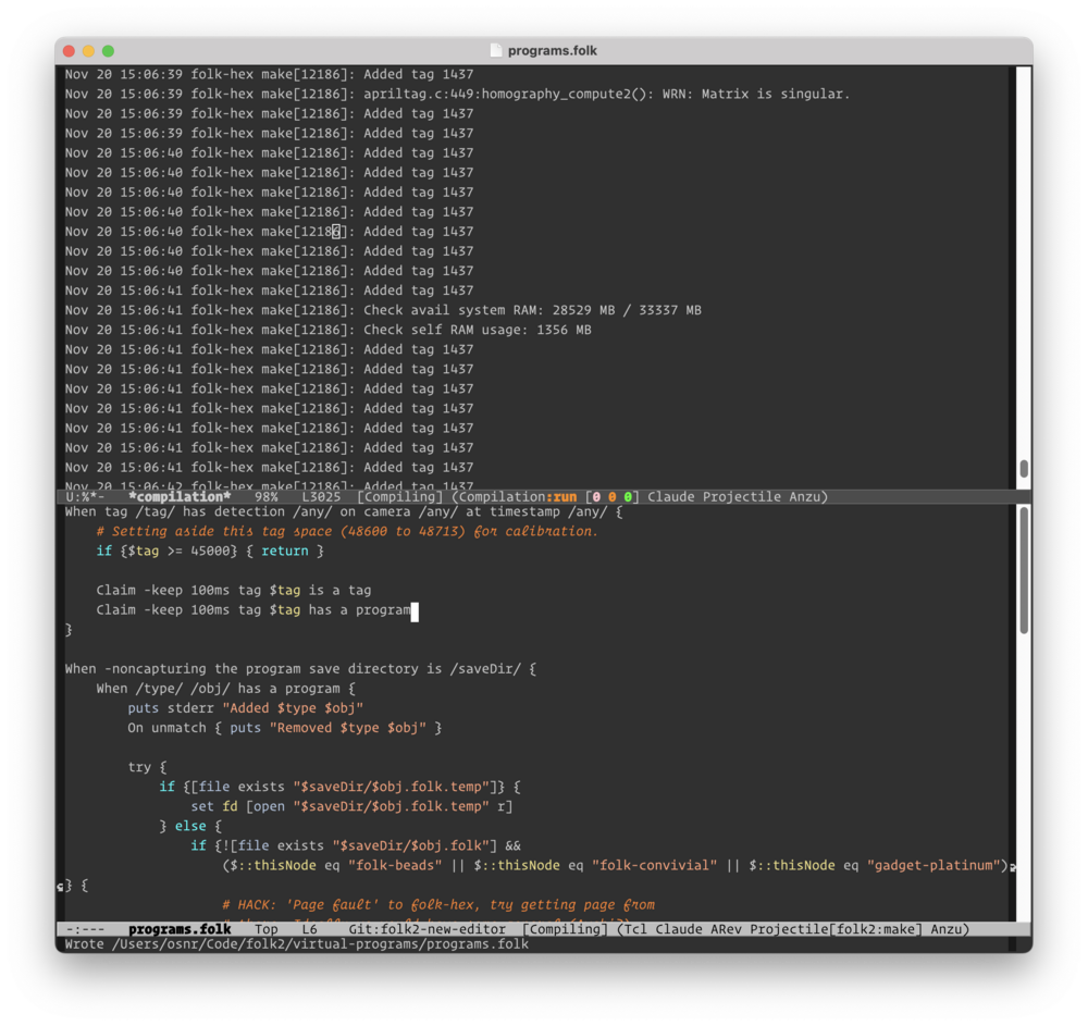 Daniel Pipkin and Omar have been pairing on fixing some of the remaining annoyances in folk2. (We've also been chatting about new printing functions.)