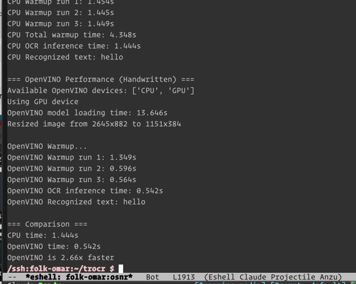 Omar: Inspired by our new PC experiments, I spent some of a day trying TrOCR, which (trocr-base-handwritten) seems like the best system out there for local/fast handwriting recognition? (if you want to do it continuously and for free and low-latency-ish, as opposed to just feeding to a large language model remotely and waiting several seconds)
