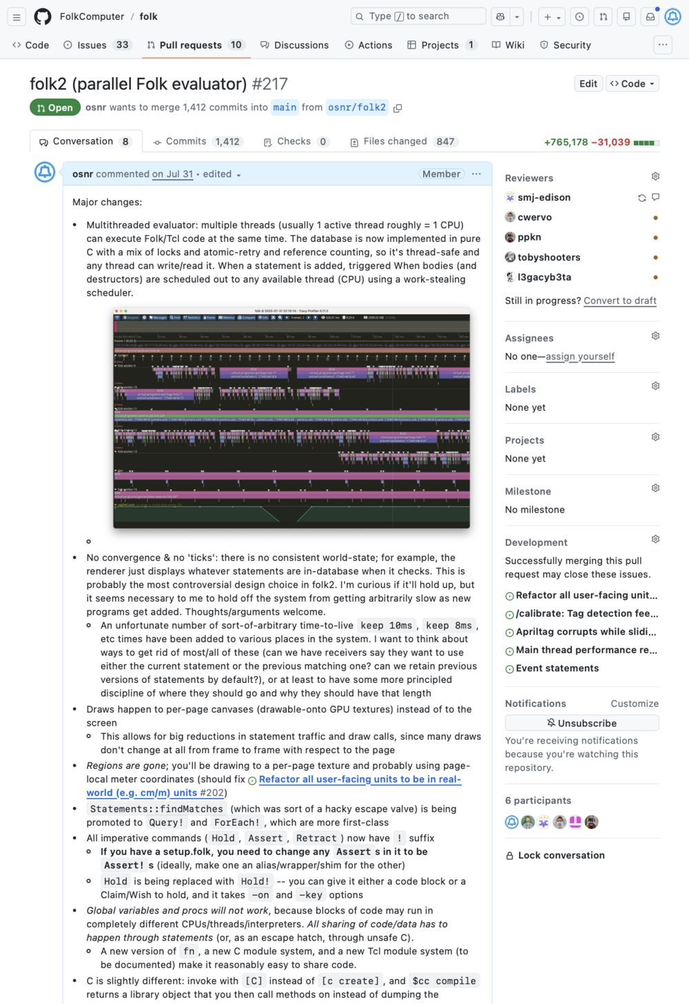 - Scheduler now scales number of Folk worker threads up to roughly the CPU count, to make better use of bigger Folk PC we have (the scheduler probably still needs a lot of work to be robust against a lot of different workloads)
