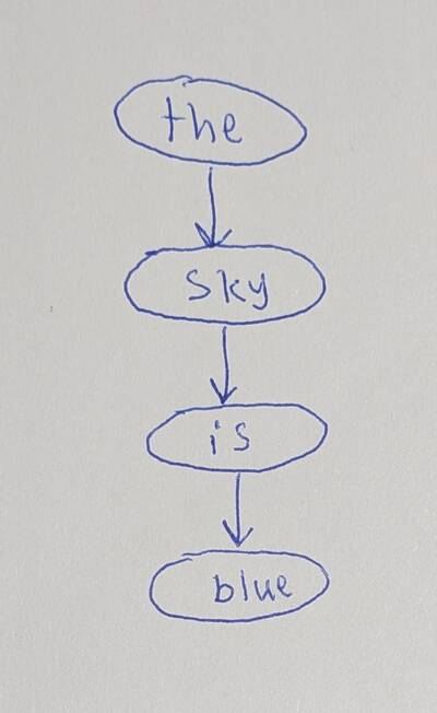A Trie is the data structure that underlies Folk's database. It is the database's index for all Statements. Let's look at an example Statement with the Clause “the sky is blue”.